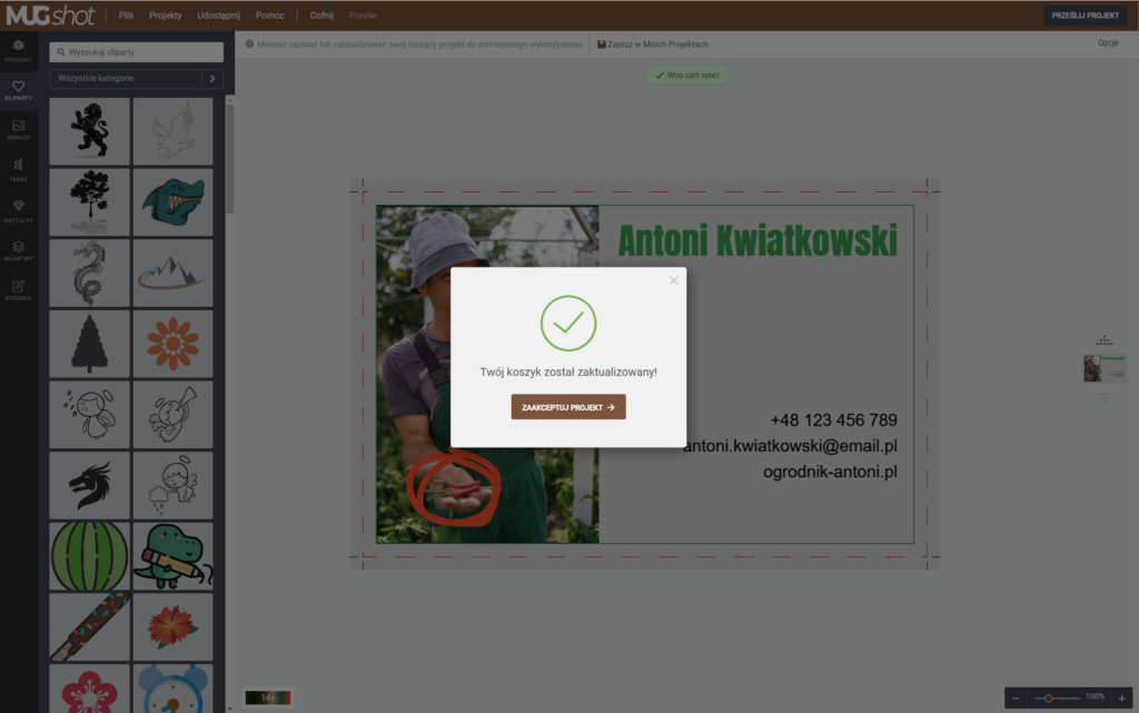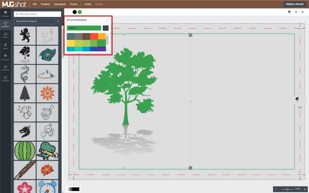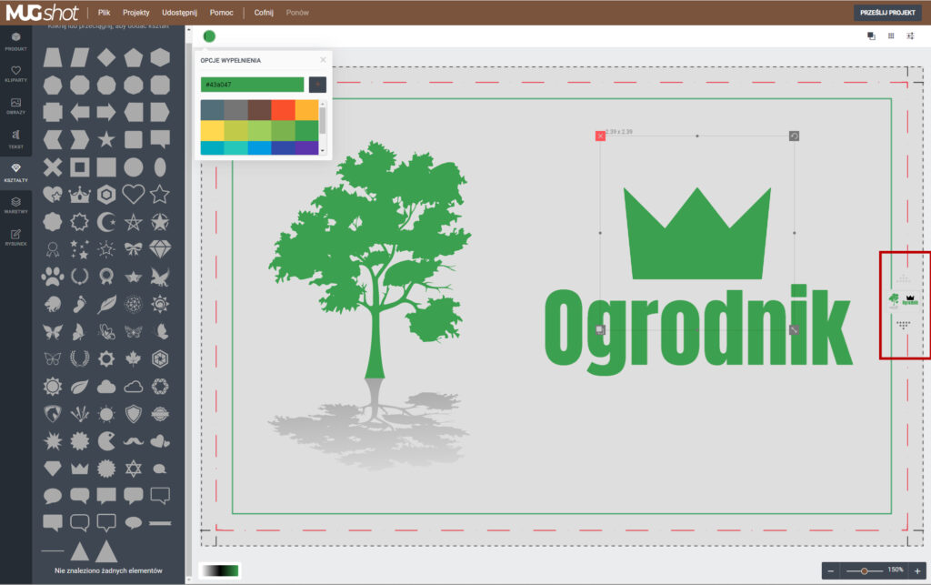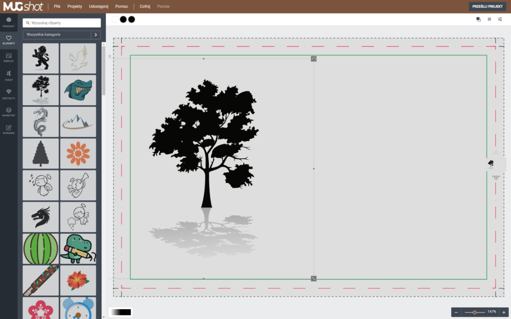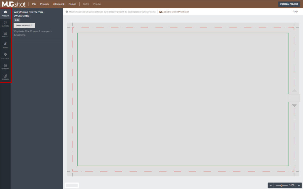 Po zakończeniu projektu kliknij „PRZESLIJ PROJEKT” w prawym górnym rogu