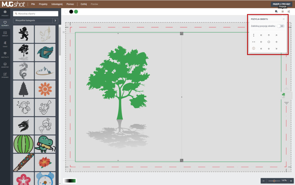 Sterowanie pozycją obiektu znajdziesz w prawym górnym rogu pod ikonką pozycji