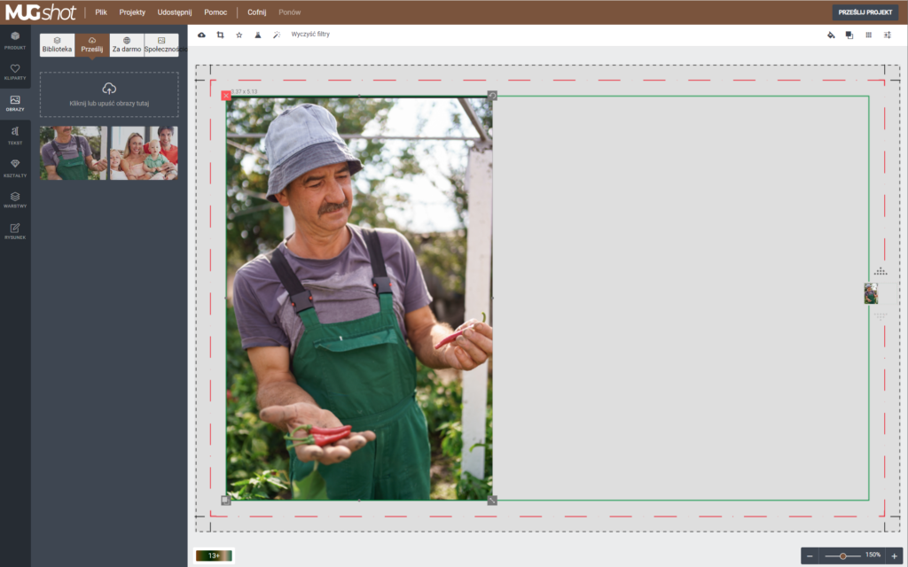 W zakładce obrazy możesz przesłać własne zdjęcie a następnie dodać je do projektu