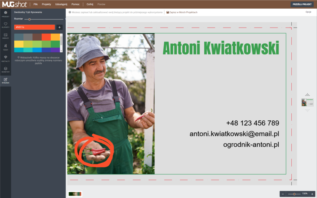 Z prawej strony znajdziesz panel do przejścia na drugą stronę (tylko jeżeli wybierzesz wersję dwustronną)